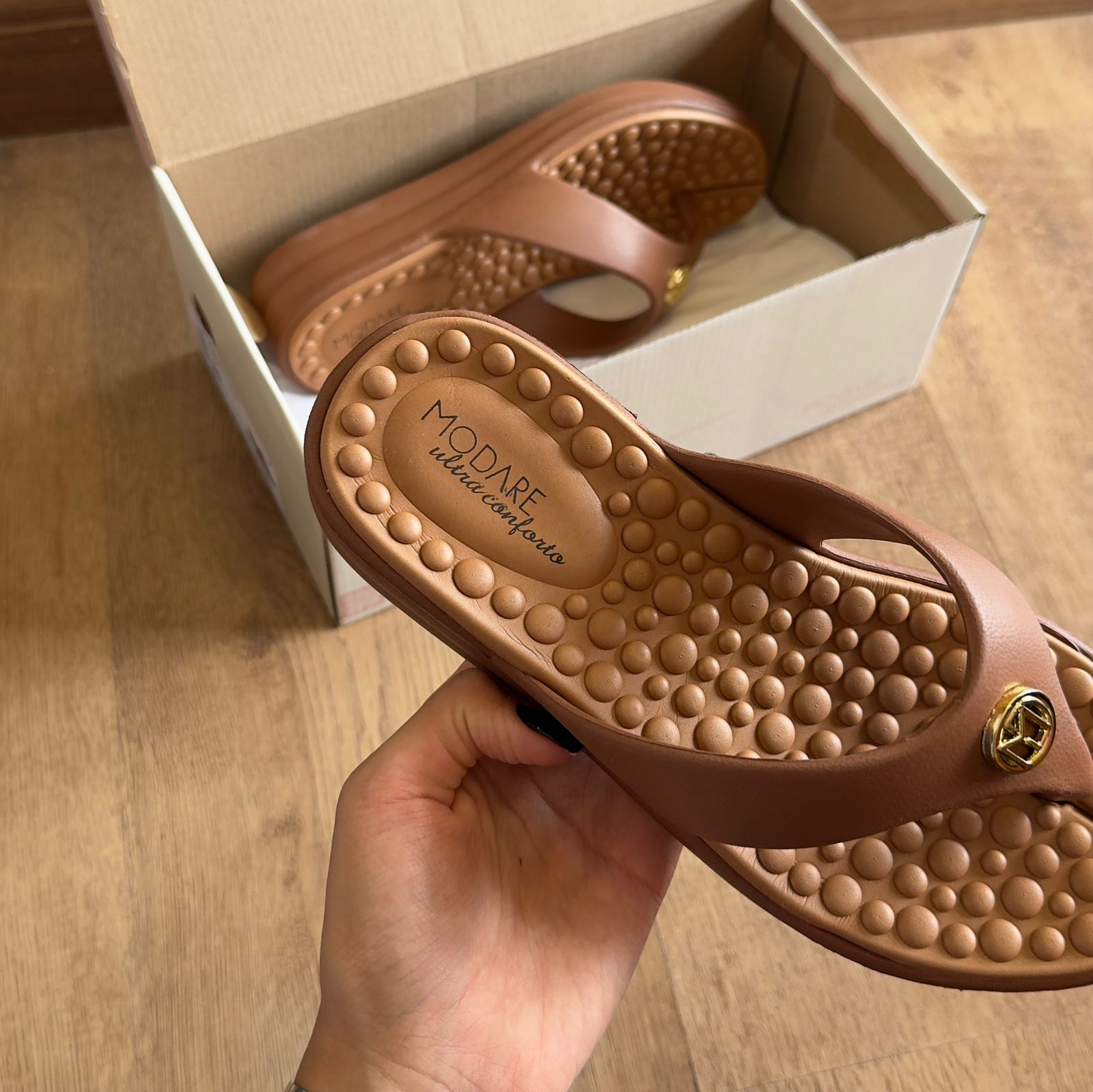 O Chinelo Modare traz elegância e conforto em cada passo. Com um design minimalista e moderno, ele se destaca pelo detalhe dourado da marca no cabedal, que adiciona um toque sofisticado à peça. A palmilha ultra macia e o solado leve garantem bem-estar durante todo o uso, tornando-o ideal para momentos de descanso ou composições casuais com charme. Perfeito para quem busca praticidade sem abrir mão do estilo.