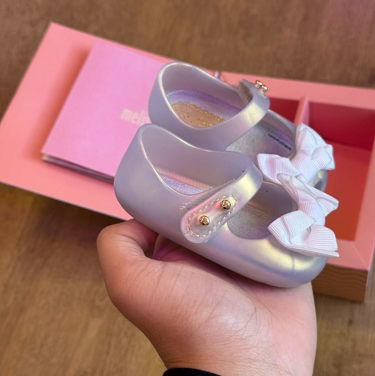 A Mini Melissa My First Baby é muito mais do que uma sapatilha — é o primeiro passo de uma história cheia de amor. Criada especialmente para bebês na numeração 15, esse modelo celebra a chegada da primeira Melissa com todo o charme e cuidado que esse momento merece.
