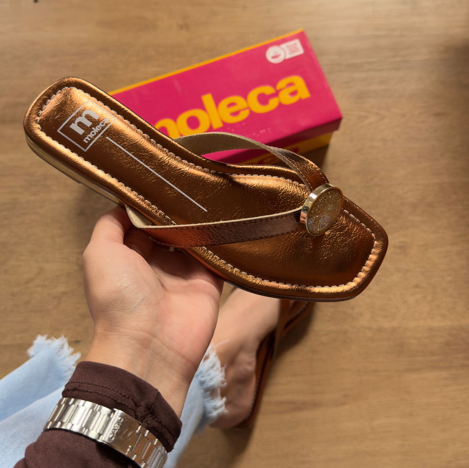 A Sandália Moleca Rasteira 5559.102 destaca um detalhe circular nas tiras, que confere um toque moderno e elegante ao visual. A palmilha macia e o solado estável proporcionam conforto o dia inteiro, tornando-a ideal para passeios, encontros casuais e momentos de lazer com facilidade e sofisticação.