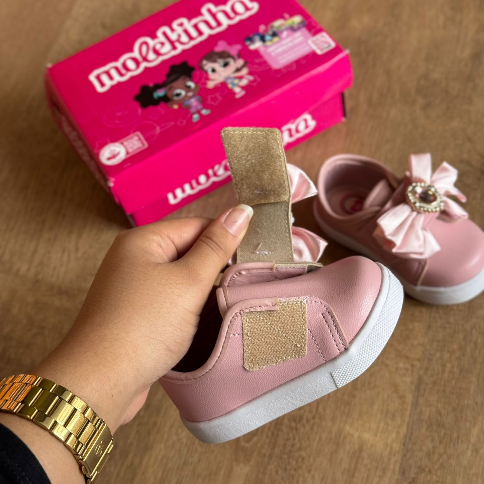 Tênis infantil Molekinha com design casual e toque sofisticado. Apresenta detalhe de laço brilhante que adiciona personalidade ao visual. Ideal para o dia a dia das crianças, combina conforto e estilo em uma proposta acessível. Perfeito para quem busca qualidade sem abrir mão da praticidade. Modelo 2118.596.