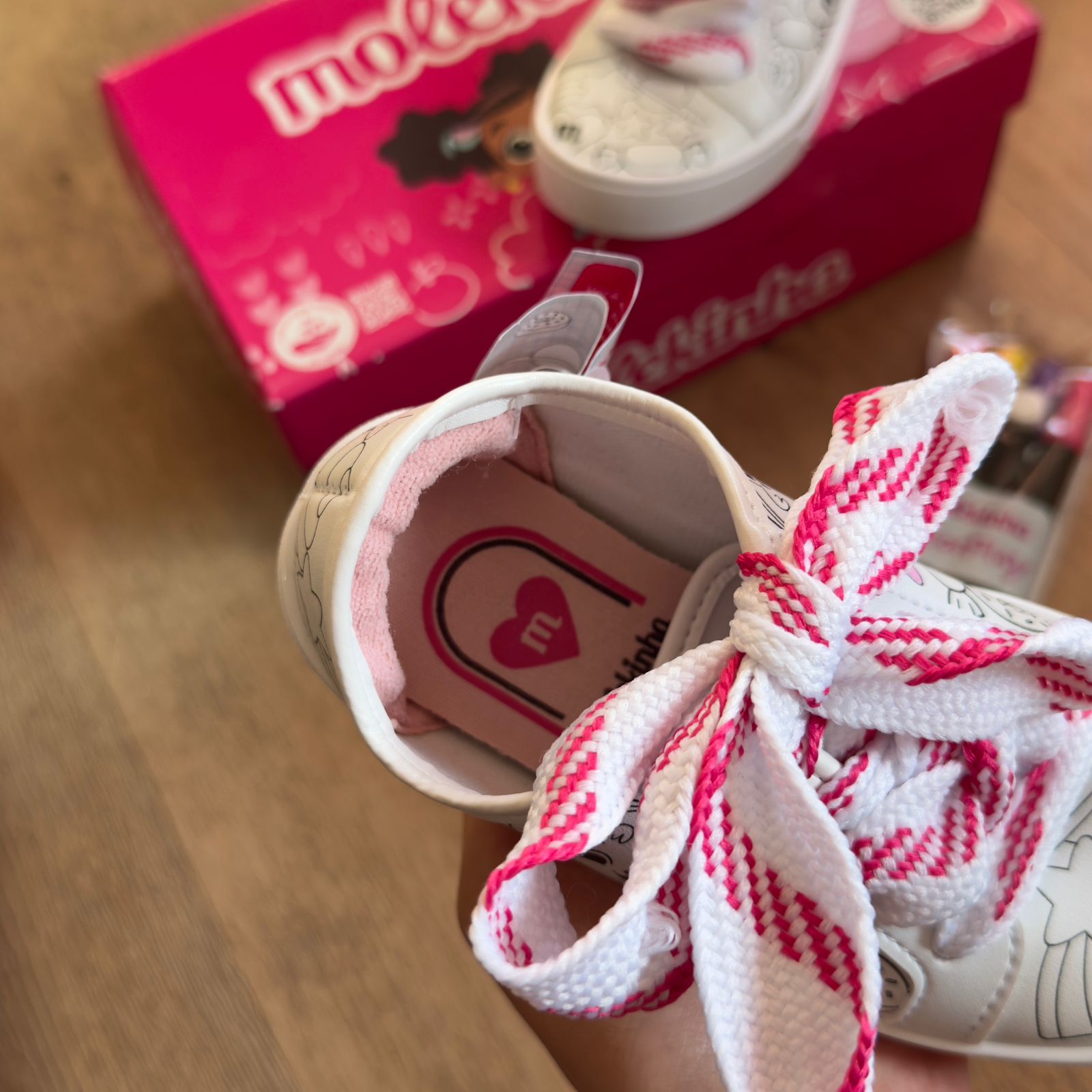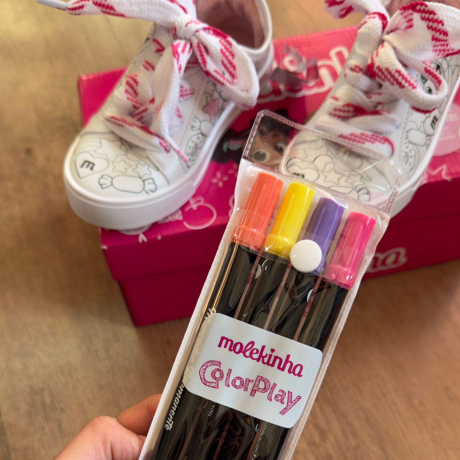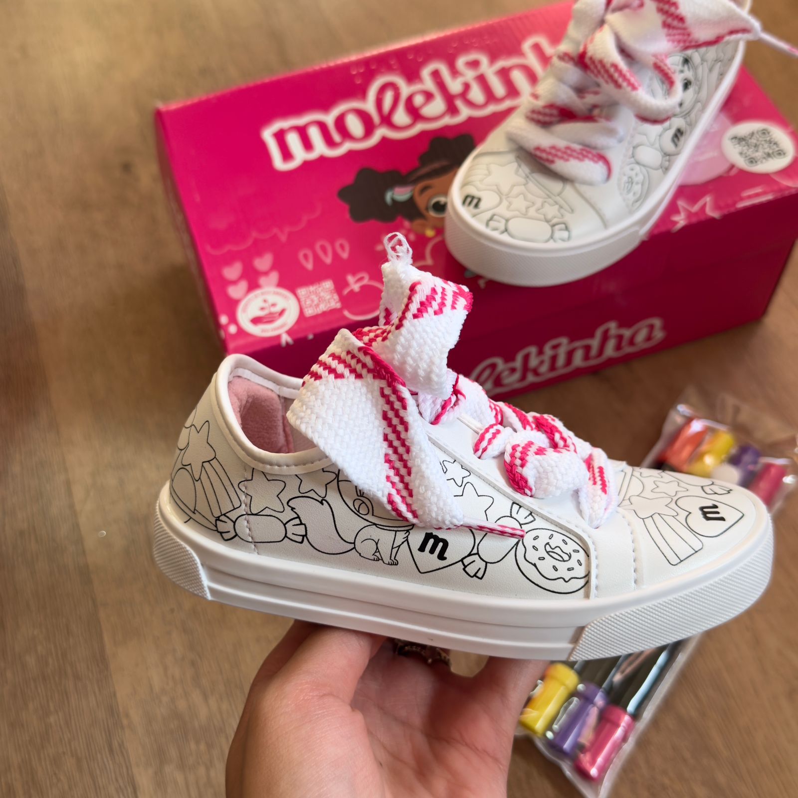 Tênis infantil Molekinha com design especial para colorir, oferecendo diversão criativa durante o uso. Confeccionado com materiais de qualidade, proporciona conforto e segurança para os pequenos. Ideal para crianças que gostam de personalizar seus acessórios, este modelo estimula a criatividade enquanto mantém o pé protegido. Perfeito para o dia a dia, brincadeiras e momentos de lazer.
